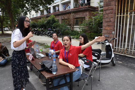 忙碌的地方不只有大学生活动中心,同样也有宿舍区,宿管阿姨和家长们亲切交流,努力做好宿舍公寓内的各项服务。材料学院团委学生会也同样派出了十余名志愿者,他们在宿舍区设置了咨询台,为家长和新生答疑解惑,并提供了搬运行李的服务,为家长带路参加家长会,得到了家长和新生的一致好评。