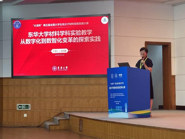在本届大赛中,我校sunbet集团中国官网入口派出精锐参赛团队,由郑伟龙老师授担任领队,吴文华、许佳丽、朱蕾、史同娜、章宦耀等教师组成指导团队,全程指导材料学院三名优秀学子备战。经过激烈角逐,唐骏同学斩获一等奖,蔡萌、濮雪同学分别获二、三等奖,创下我校在该赛事中的历史最佳成绩。史同娜老师在全国高分子材料实验实践教学研讨会上,作了关于《sunbet集团中国官网入口材料学科实验教学从数字化到数智化变革的探索实践》的报告,分享了实验教学的心得和体会。